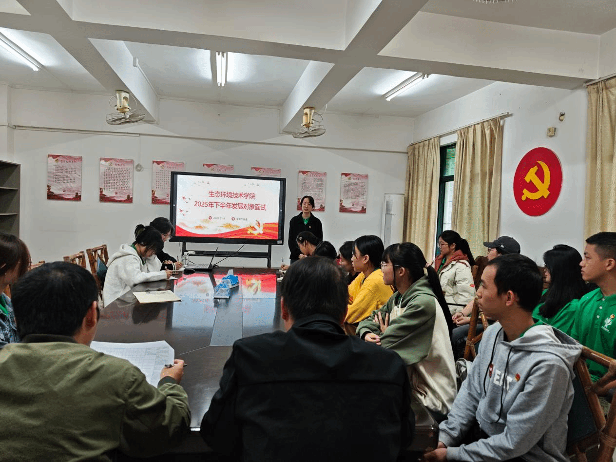 为贯彻落实新时代党的组织路线,严把党员发展入口,切实提升党员发展质量,2025年11月4日,生态环境技术学院学生党支部在行政楼2408召开发展对象推优会议。