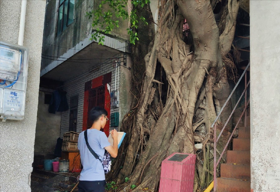 另外,这次调查之行,因为有熟悉古树位置的村委会人员的带领,本次的古树巡查活动较之前速度更快、效率更高。反之,之前因为街道复杂,古树地理位置不清楚,寻找古树很耗费时间和精力。当然,今天不仅仅有村政府人员的协助,而且也有当地居民的热情帮助。最终在当地村民和村委会的人员热情帮忙下,找到了古树并对其生长情况和生活环境进行记录。