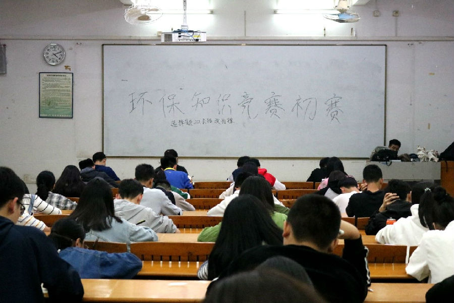 为了积极响应习近平总书记十九大报告中倡导加快生态文明体制改革、推进绿色发展、建设美丽中国的战略部署。2019年4月12日,由生态环境技术学院承办的环保知识竞赛初赛在教学楼2108、2109教室如期举行,本次初赛的比赛形式为笔试,并且最后将从中选出比赛成绩前八名进入决赛。